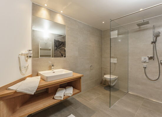 - 2 Badezimmer mit Regendusche, WC und Haartrockner